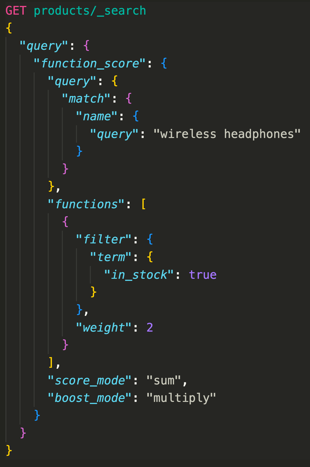 One of the most common approaches is adding query-time boosts. This can be as soft a touch as you make it - results can still be relevant, but documents that meet certain business criteria get an extra nudge. Let’s look at how you might achieve this in Elasticsearch:
